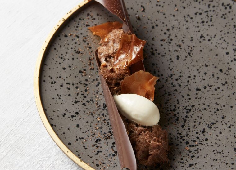 Chocolat caraïbes en ganache, crème glacée café, caramel d’épices & whisky Alsacien