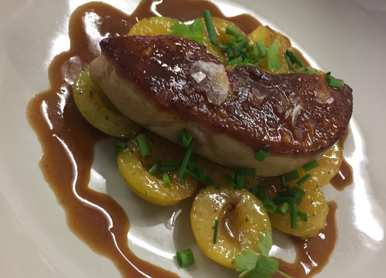 Escalope de foie gras d’oie poêlée, mirabelle d’Alsace, jus au Melfor