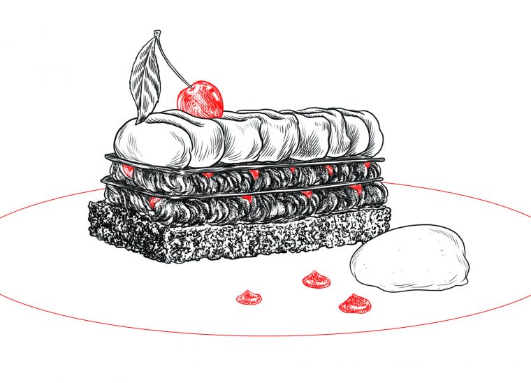 Forêt noire façon millefeuille, glace au tonka