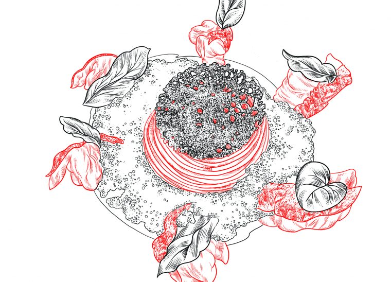. Mélanger 200 g de jus de homard l’huile d’olive et la farine, puis dans une poêle anti adhésive réaliser des tuiles dentelles de jus de homard