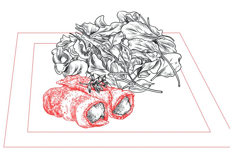 Enrouler une cuillère à soupe de cette pâte dans une tranche de lard.